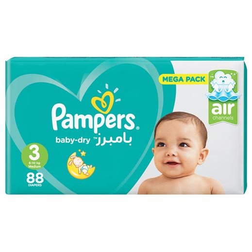 Pampers Baby-Dry Diapers, Size 3, Midi, 6-10kg, Mega Pack, 88 Count