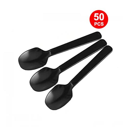 Small black plastic spoons for sweets and ice cream – 50 Pieces