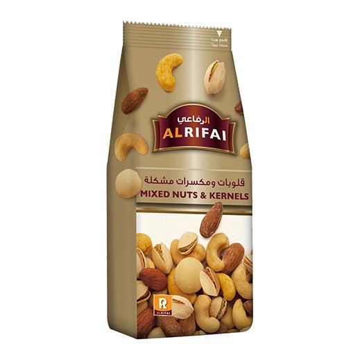 استمتع بالطعم اللذيذ المقرمش مع خلطة الكوكتيل من منتجات الرفاعي المشهورة عالية الجودة ، تتكون الخلطة من: فول سوداني ، لوز ، كاجو ، بيكان ونشاء الذرة.