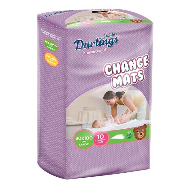 دارلينغز – شراشف صحية عند تغيير الحفاض حجم كبير (80×100 سم) 10 حبة